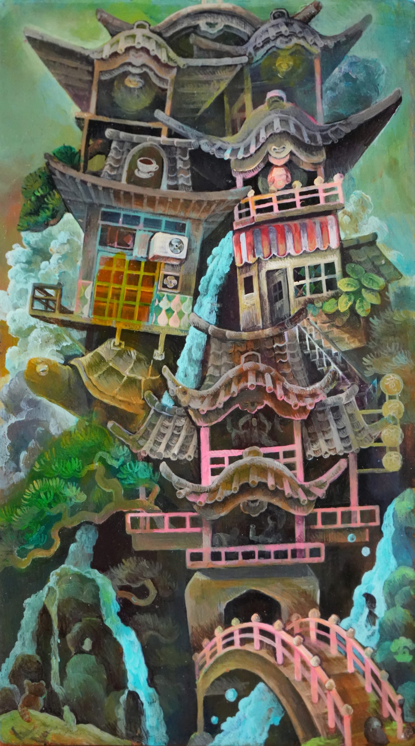 カフェ竜宮 カフェ竜宮 カフェ竜宮 カフェ竜宮 /h180×w105×d25/ 木製パネルに綿布、アクリル絵の具/ Cotton cloth, acrylic paint on wooden panel/ 木板上棉布、丙烯颜料/ 木板上棉布、壓克力顏料/