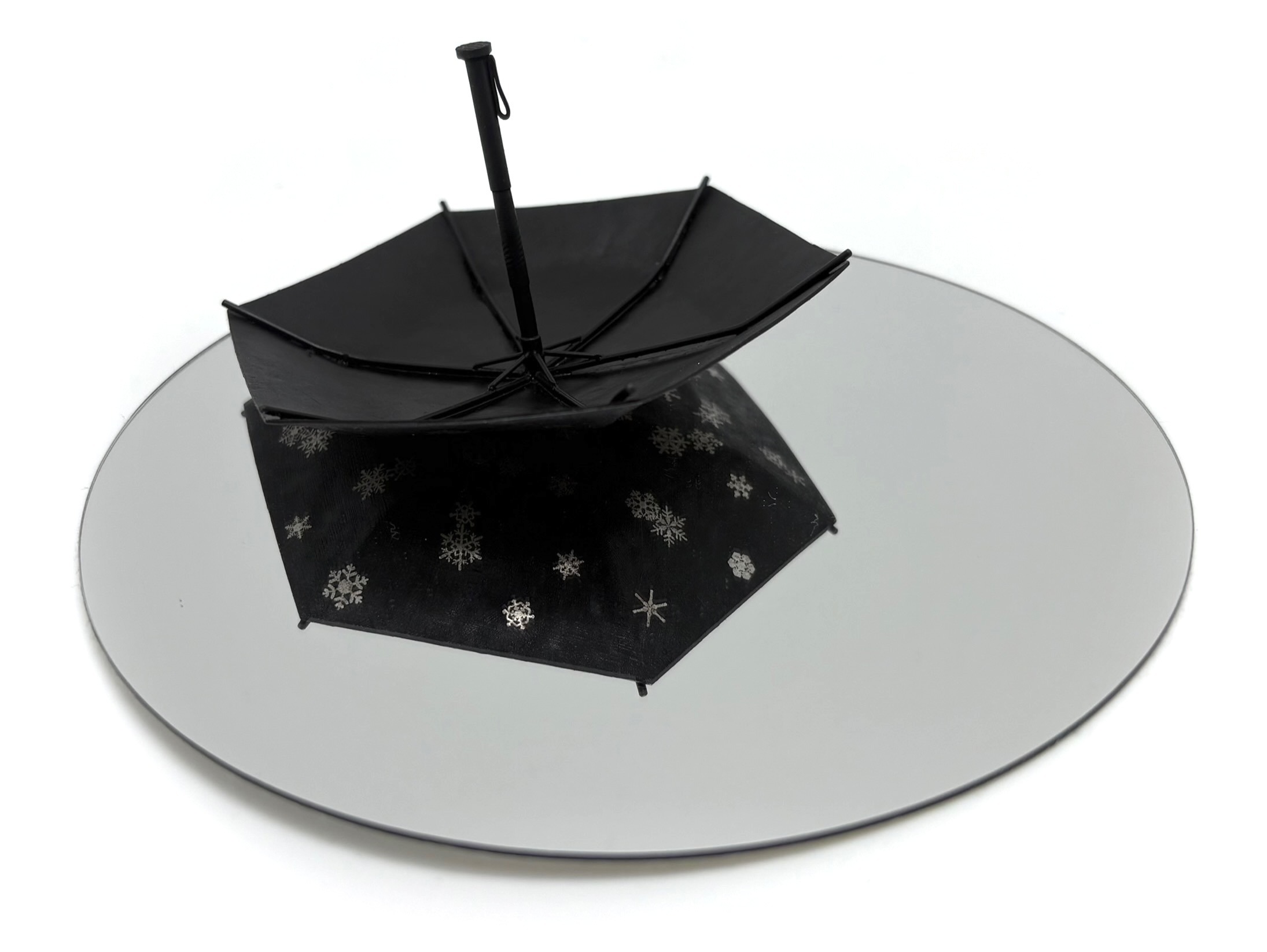 布目象眼 飾傘「淡雪」 布目象眼 飾傘「淡雪」 布目象眼 飾傘「淡雪」 布目象眼 飾傘「淡雪」 /h50×w85×d96/ 布目象眼・鍛金 / 銀・鉄/ Fabric inlay and hammered metal / silver and iron/ 织物镶嵌和锤击金属/银和铁/ 織物鑲嵌和錘擊金屬/銀和鐵/