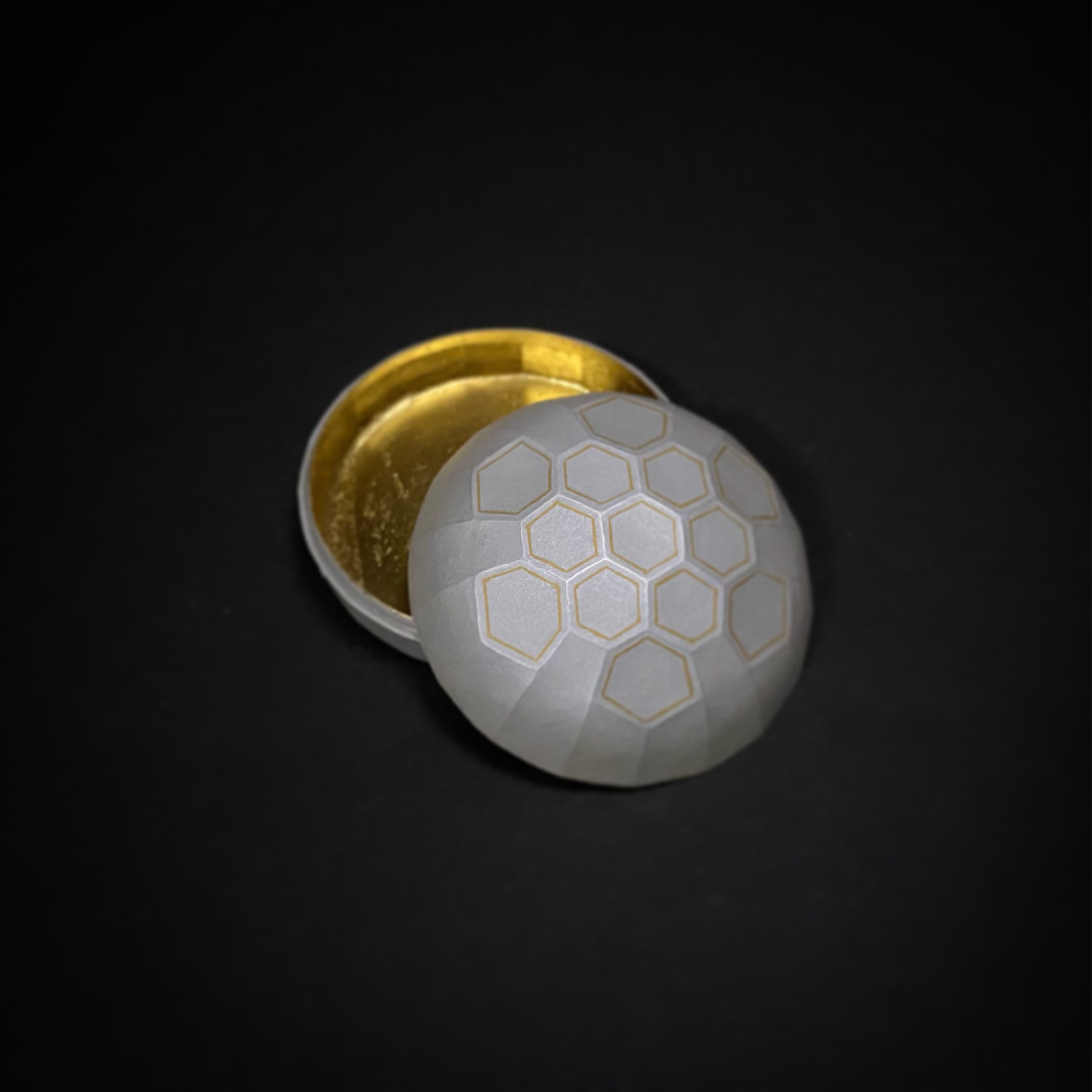 魚々子地亀甲文象嵌合子 魚々子地亀甲文象嵌合子 魚々子地亀甲文象嵌合子 魚々子地亀甲文象嵌合子 /h32×w63/ 魚々子・寄線象嵌 / 銅・銀/ Fish roe and inlaid lines / copper and silver/ 鱼籽镶嵌线条/铜银/ 魚籽鑲嵌線條/銅銀/