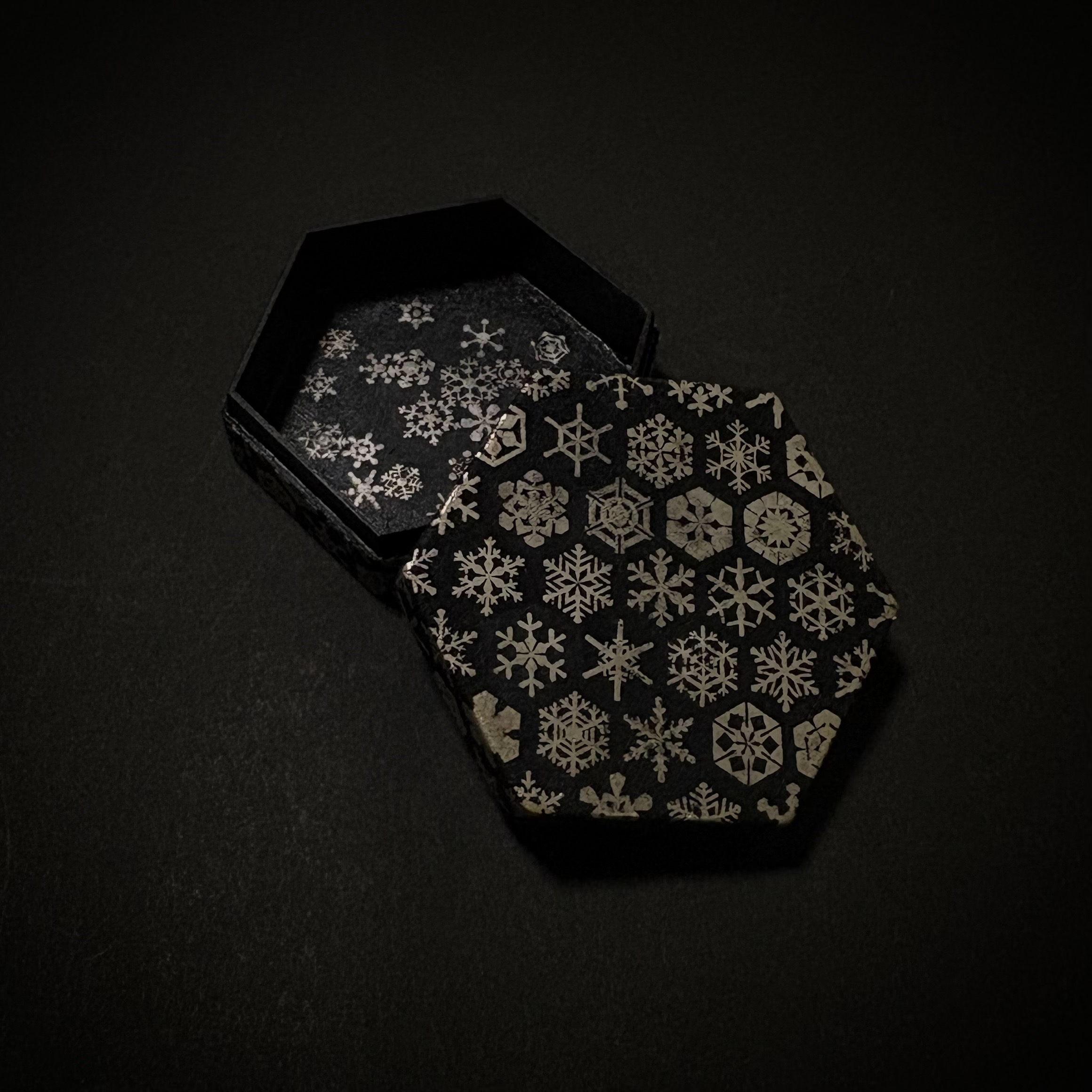 布目象眼雪華文六角合子 布目象眼雪華文六角合子 布目象眼雪華文六角合子 布目象眼雪華文六角合子 /h20×w59×d52/ 布目象眼 / 鉄・銀/ Fabric inlay / iron and silver/ 织物镶嵌/铁和银/ 織物鑲嵌/鐵和銀/