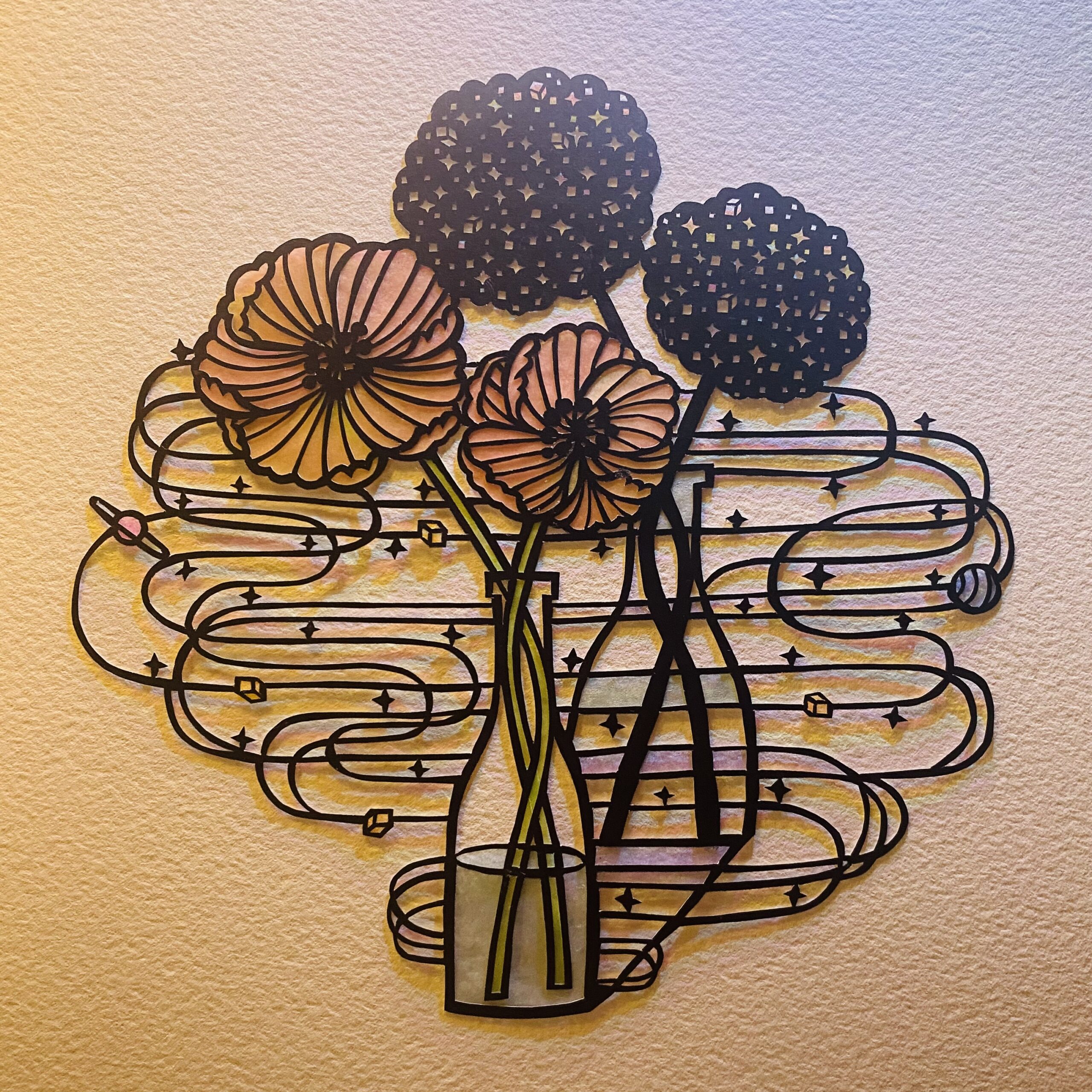In 2021, she held a solo exhibition at FABRE, a bar in Ikenoue, marking her debut as a paper-cutting artist. In 2022, she held a solo exhibition at CHILITA in Nakameguro. In 2023, she held solo exhibitions at Karabinka in Meguro and Asahiya in Sangenjaya. She has created music videos for artists such as Ahh! Folly Jet, Mumbia Y Sus Candelosos, and AYANE SHINO, making full use of her paper-cutting art. Finally, breaking free from the confines of mere images and videos, she began projecting her paper-cut art three-dimensionally into space using an overhead projector.