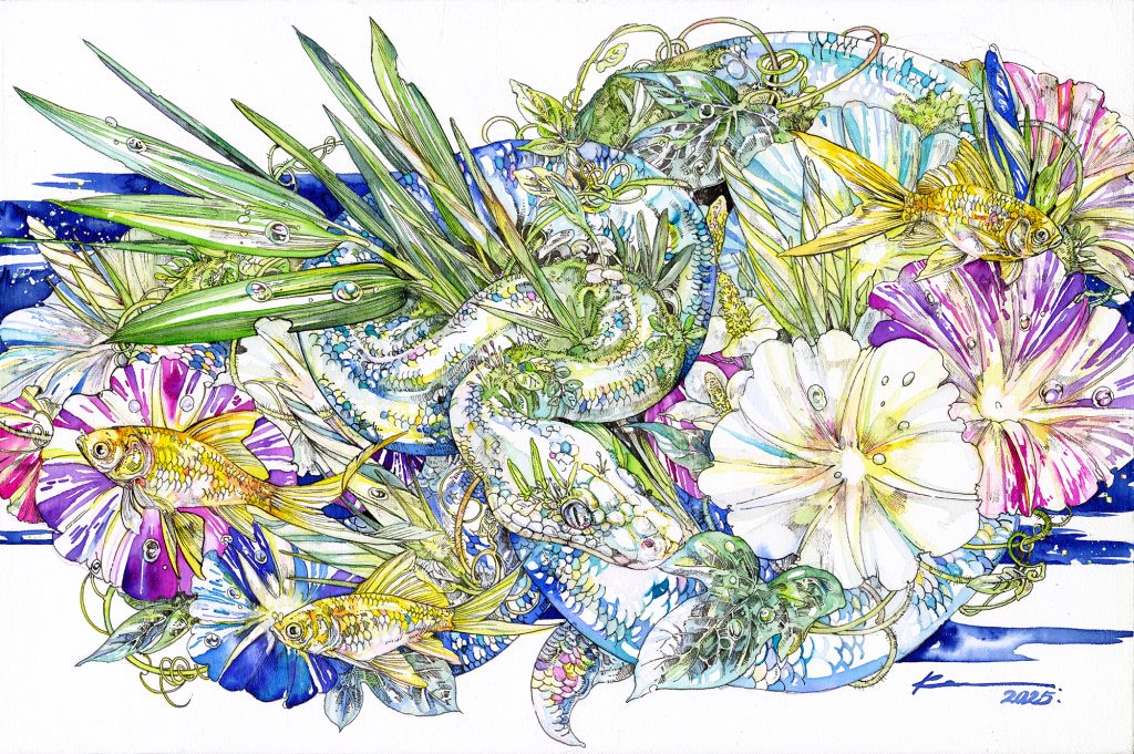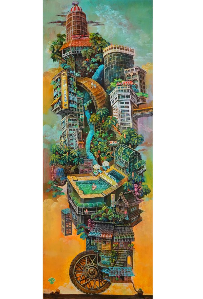 h227×w158×d60/ mixed media (bayberry wood, gold leaf, silver leaf, copper wire, UV print on panel)/